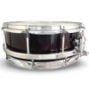 This 14×5.5 dark cherry gloss finish all Bubinga snare is a beauty. 12ply, 10mm in thickness – it’s free floating voice can tune right up to the sound of a gun shot. It gets in and out nicely note wise and has a dry, articulate snare response. The density of the wood really carries a solid snare note.The drum can really open up in the lower tuning range as well.